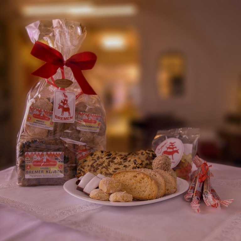 Ausgewählte Bremer Spezialitäten als Präsent verpackt enthält: